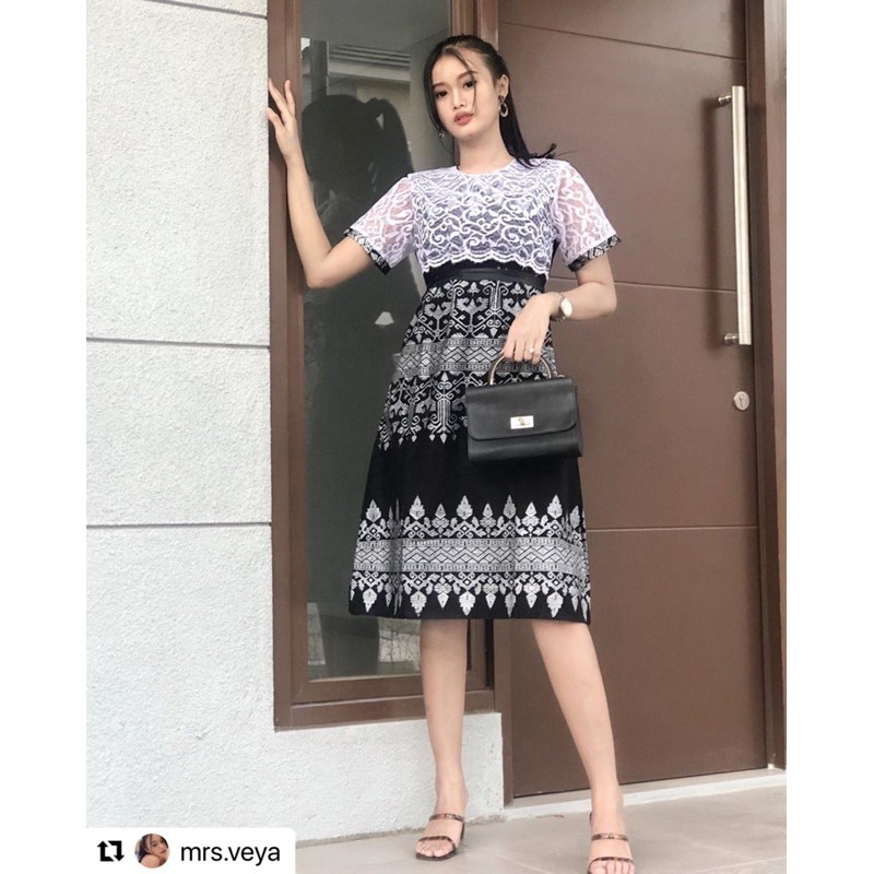Berikut ini inspirasi dress batik kombinasi brokat dengan model simple yang cocok untuk kondangan.
